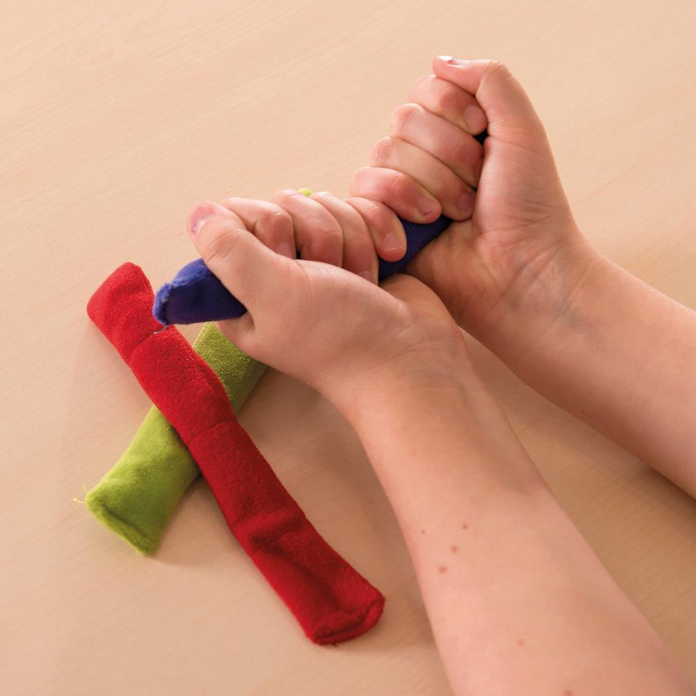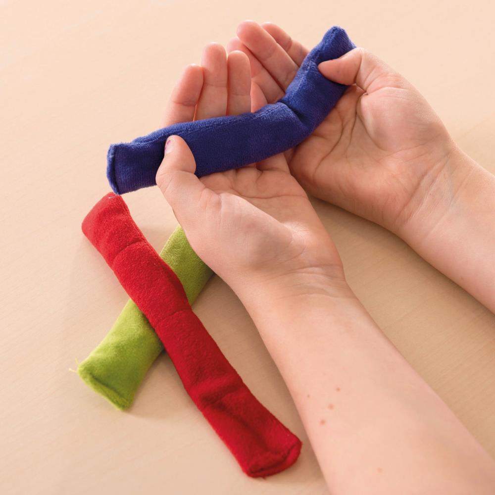 Diese gewichteten Hand-Fidgets sind mit weichem Velours umhüllt und mit komprimierbaren PVC-Granulaten gefüllt. Sie helfen beim Stressabbau und unterstützen die Konzentration von Kindern.