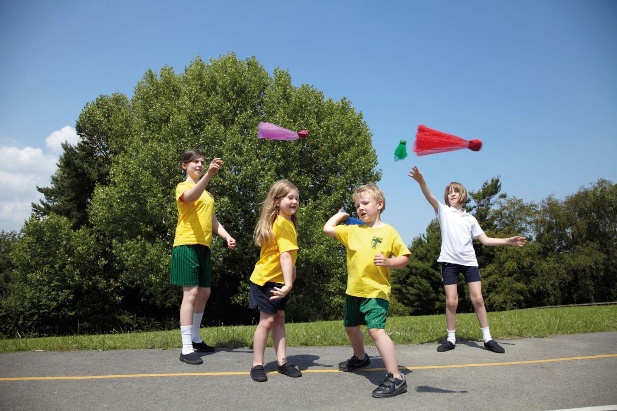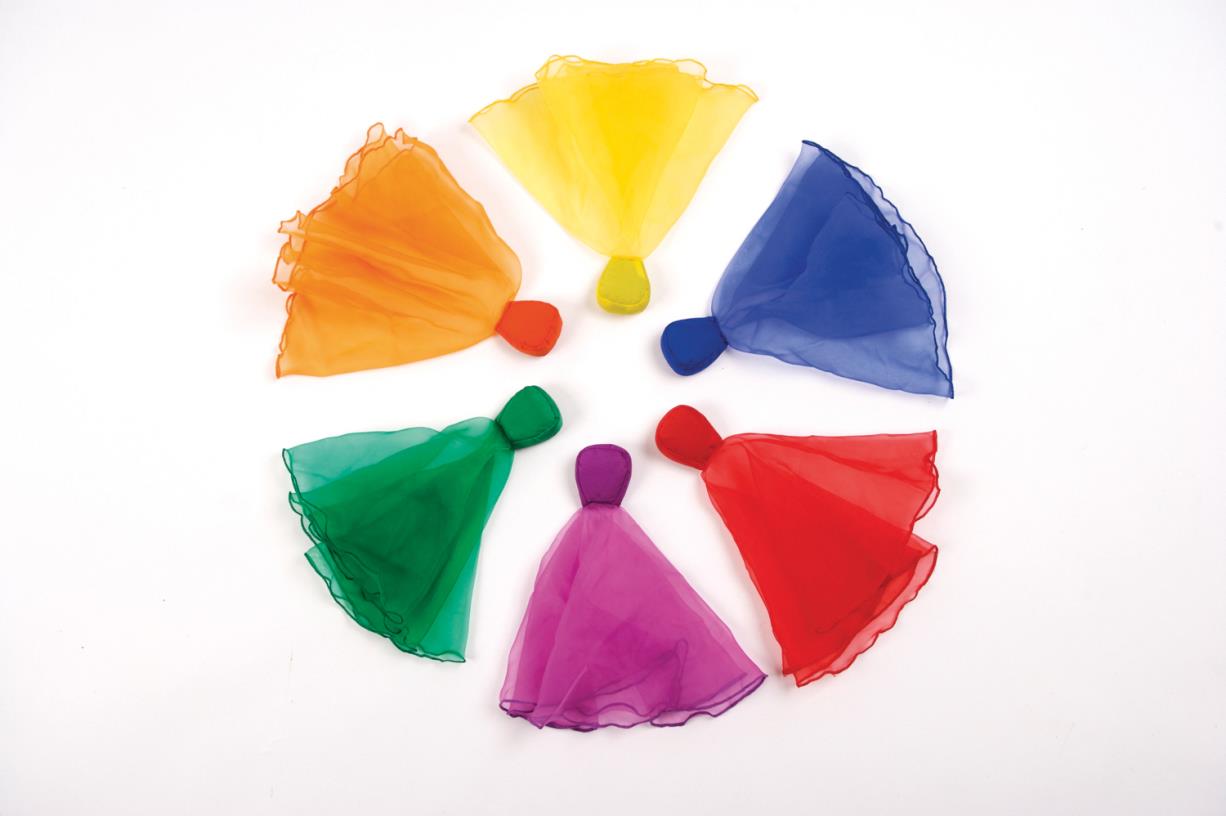 Bunte Schwungtücher mit einem beschwerten Säckchen, sodass sie ruhig und stabil durch die Luft fliegen. Dadurch lassen sie sich leicht werfen und fangen.